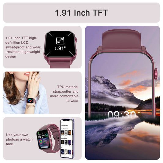 IOWODO R30MAX Unisex Smartwatch: 1.91" LED Screen, Bluetooth Calls, 100+ Sports Modes, IP68 Waterproof, 6-Day Battery, iOS/Android, Purple