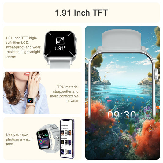 IOWODO R30MAX Unisex Smartwatch: 1.91" LED Screen, Bluetooth Calls, 100+ Sports Modes, IP68 Waterproof, 6-Day Battery, iOS/Android, Grey