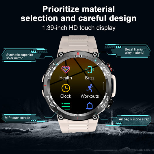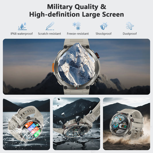 IOWODO W50PRO Military Smartwatch: 30-Day Battery, 1.45" Screen, Bluetooth Call, Flashlight, Compass, 120 Sports Modes, IP68 Waterproof, Khaki