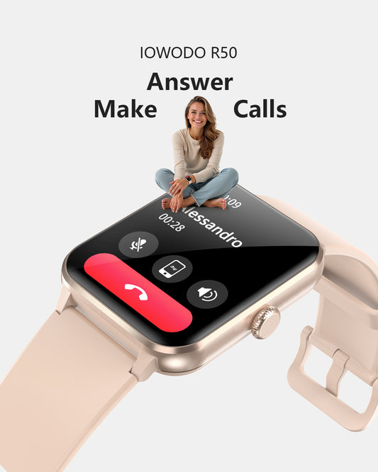 IOWODO R50Pro Smartwatch: 1.85" HD Touch Screen, Bluetooth Calls, 100+ Sport Modes, Heart Rate/SpO2/Sleep Monitor, IP68 Waterproof, 5-Day Battery, Pink