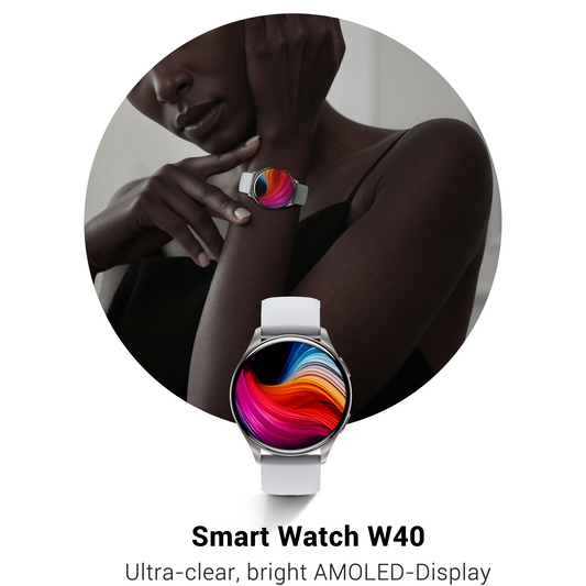 IOWODO W40 Smart Watch with AMOLED Screen, Bluetooth Call, 7-Day Battery, 110+ Sports Modes, Heart Rate/SpO2 Monitor, IP68 Waterproof (Round Dial), Silver