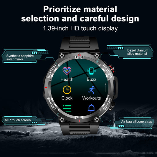 IOWODO W50PRO Military Smartwatch: 30-Day Battery, 1.45" Screen, Bluetooth Call, Flashlight, Compass, 120 Sports Modes, IP68 Waterproof, Black
