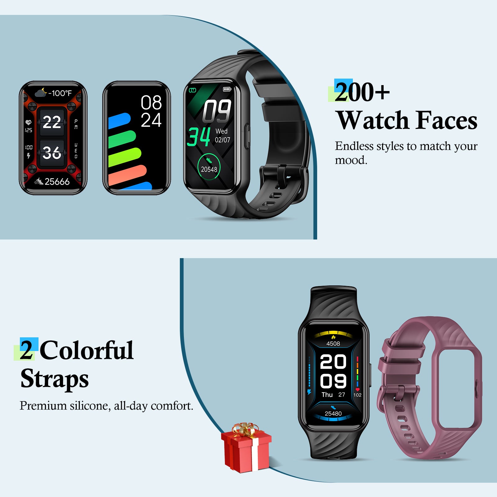 Make and answer calls directly from your wrist with the built-in speaker and microphone. Activate your phone's voice assistant (Siri/Google Assistant) for hands-free commands, making calls, setting reminders, or checking the weather.