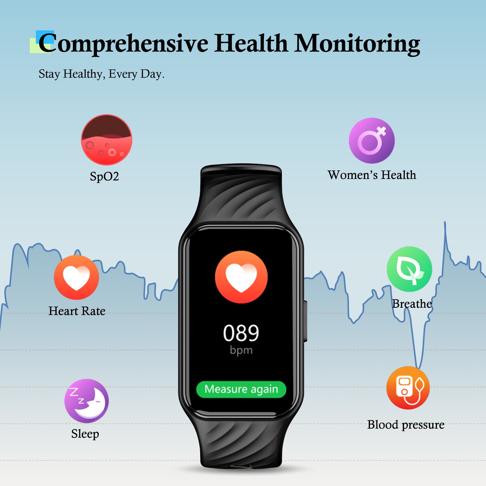 Stay on top of your well-being with automatic all-day heart rate monitoring, sleep stage tracking (deep, light, awake), blood oxygen (SpO2) measurement, and stress monitoring. It also features menstrual cycle tracking for women. (Note: Not a medical device. For general wellness and fitness purposes only).